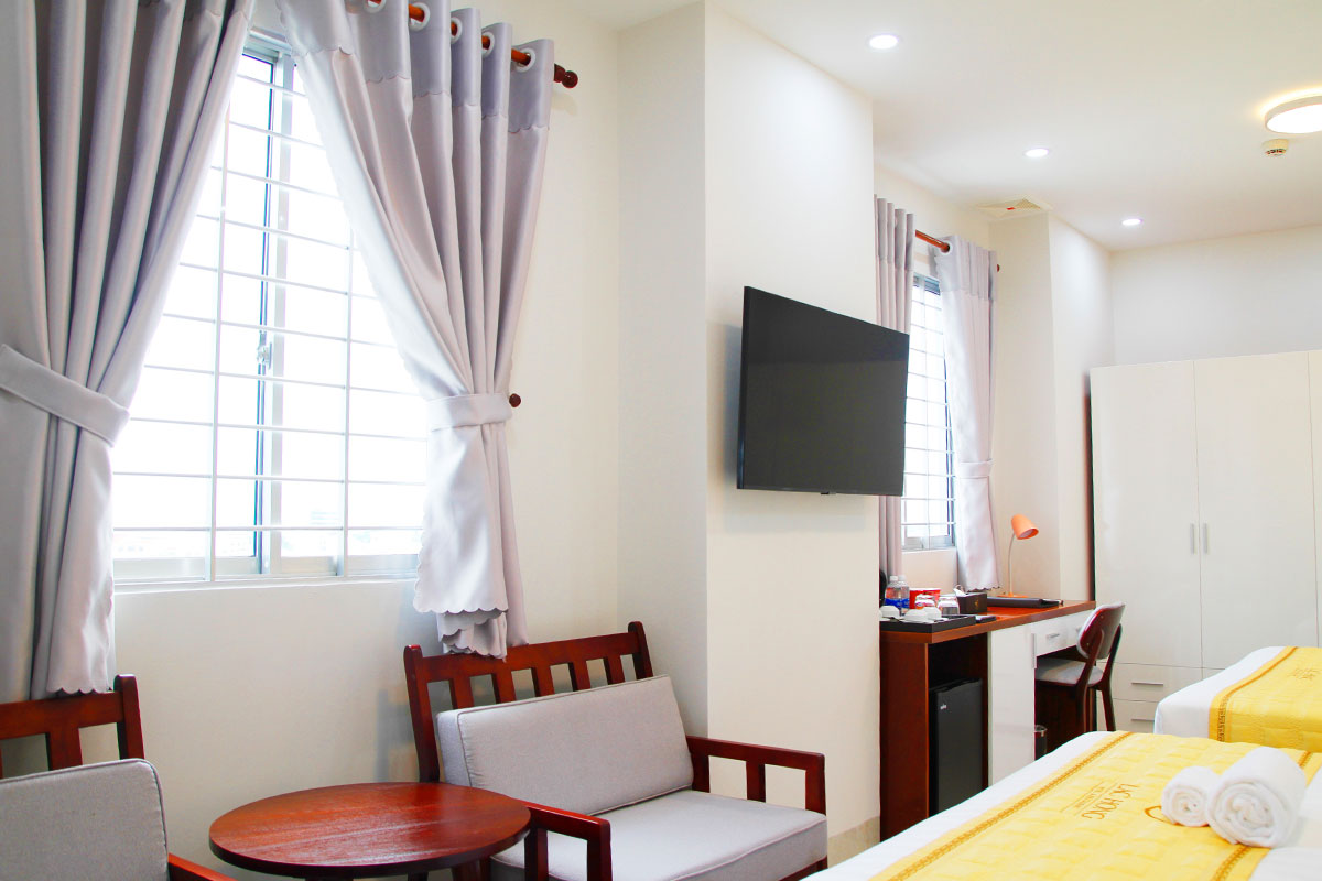 2 cửa sổ, view Thành phố, một góc sông Tiền, cầu Rạch Miễu