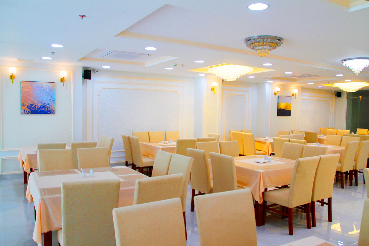 Nằm ở tầng 2 của khách sạn, Nhà hàng sở hữu không gian ấm cúng kết hợp với sự tinh tế văn hoá ẩm thực Á-Âu-Việt.