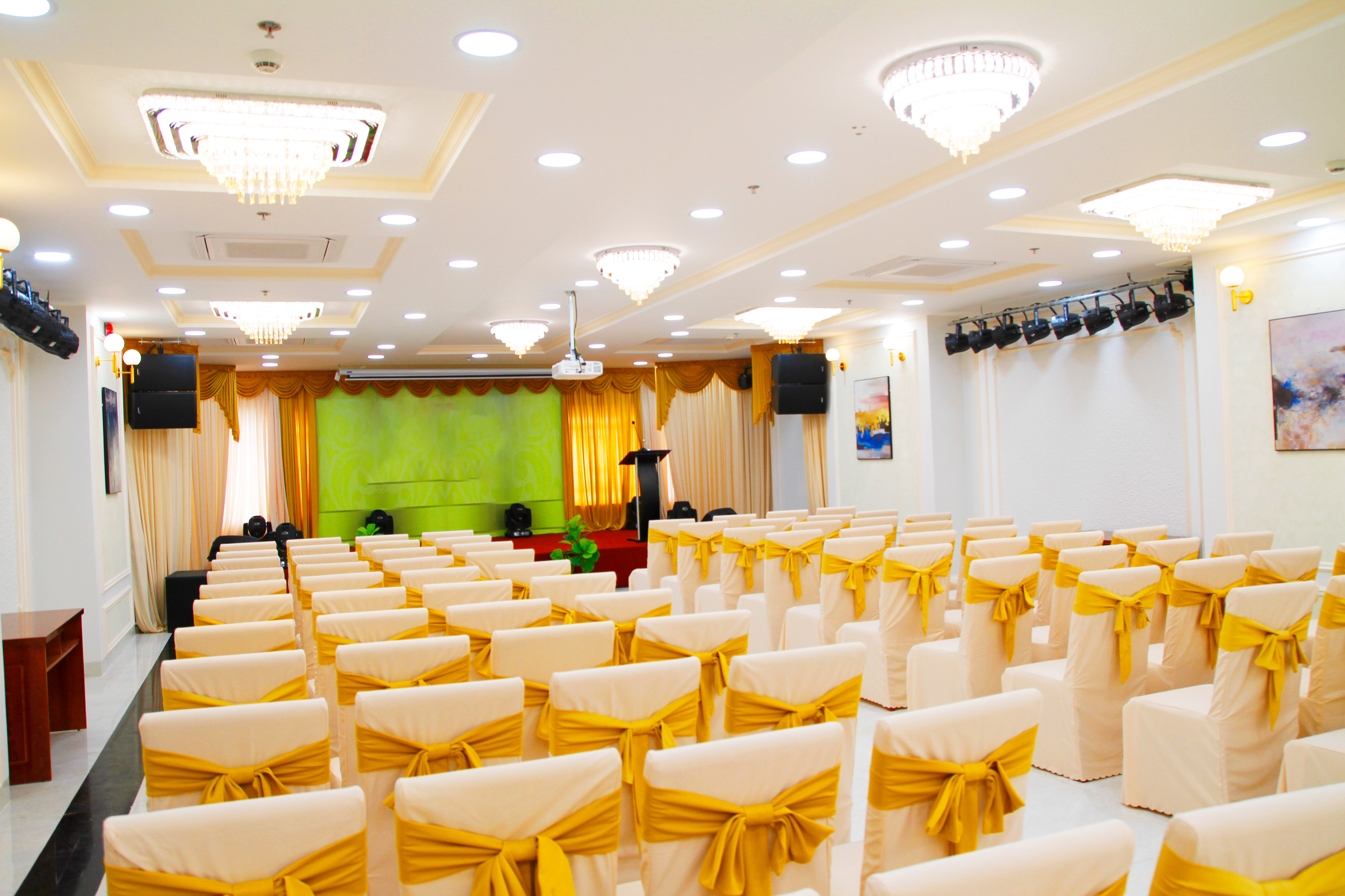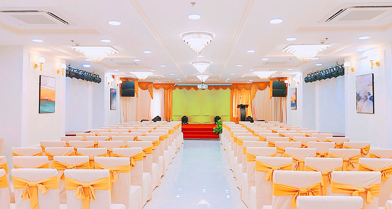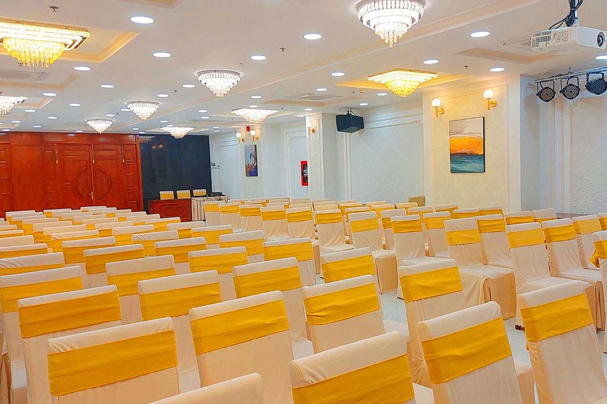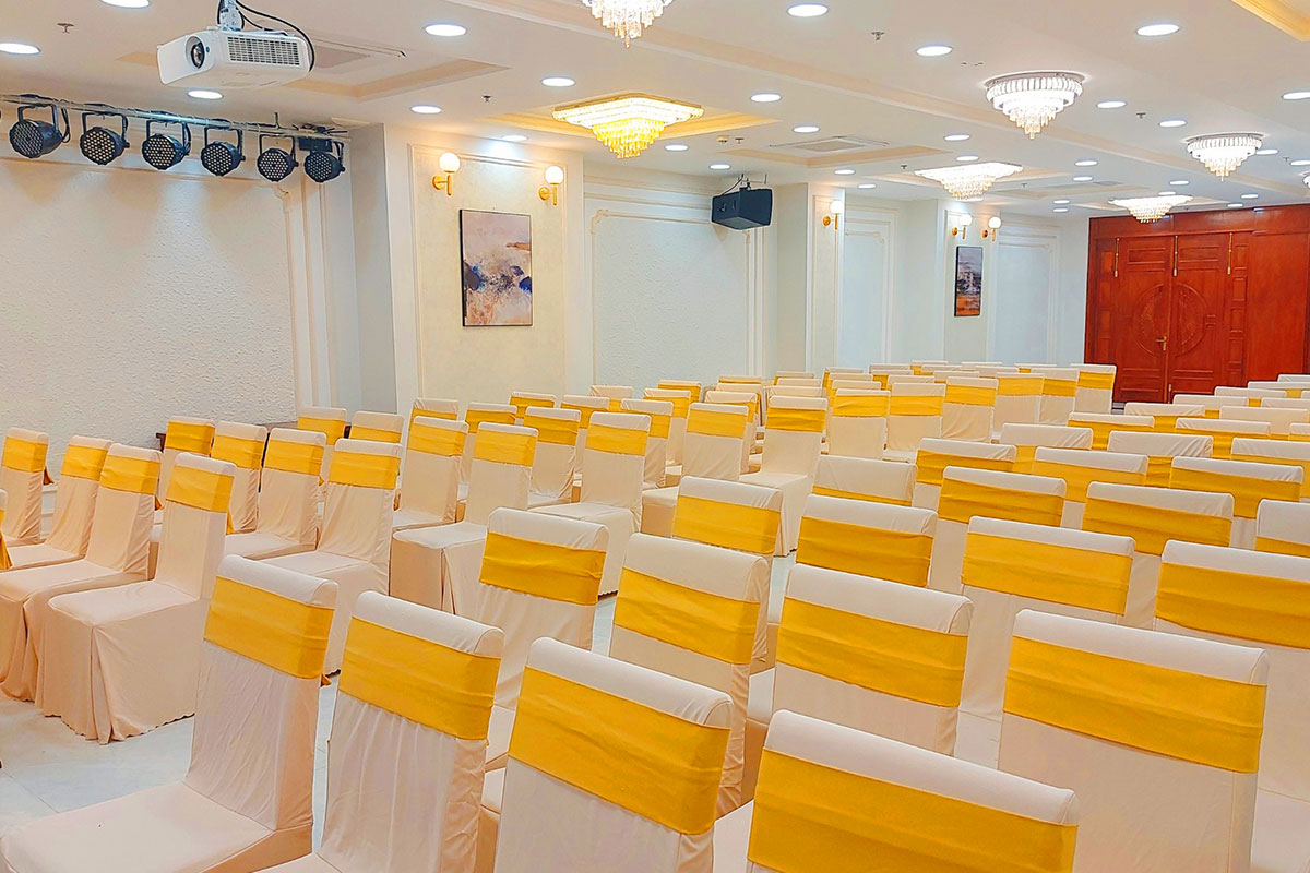Nằm ở tầng 3 của khách sạn, Sảnh Hội nghị - Tiệc cưới được xem là nơi lý tưởng để bạn có thể lựa chọn tổ chức các buổi Hội nghị, Hội thảo, Tiệc thôi nôi, Tiệc sinh nhật, Tiệc tân niên, Year end party, Sự kiện,...